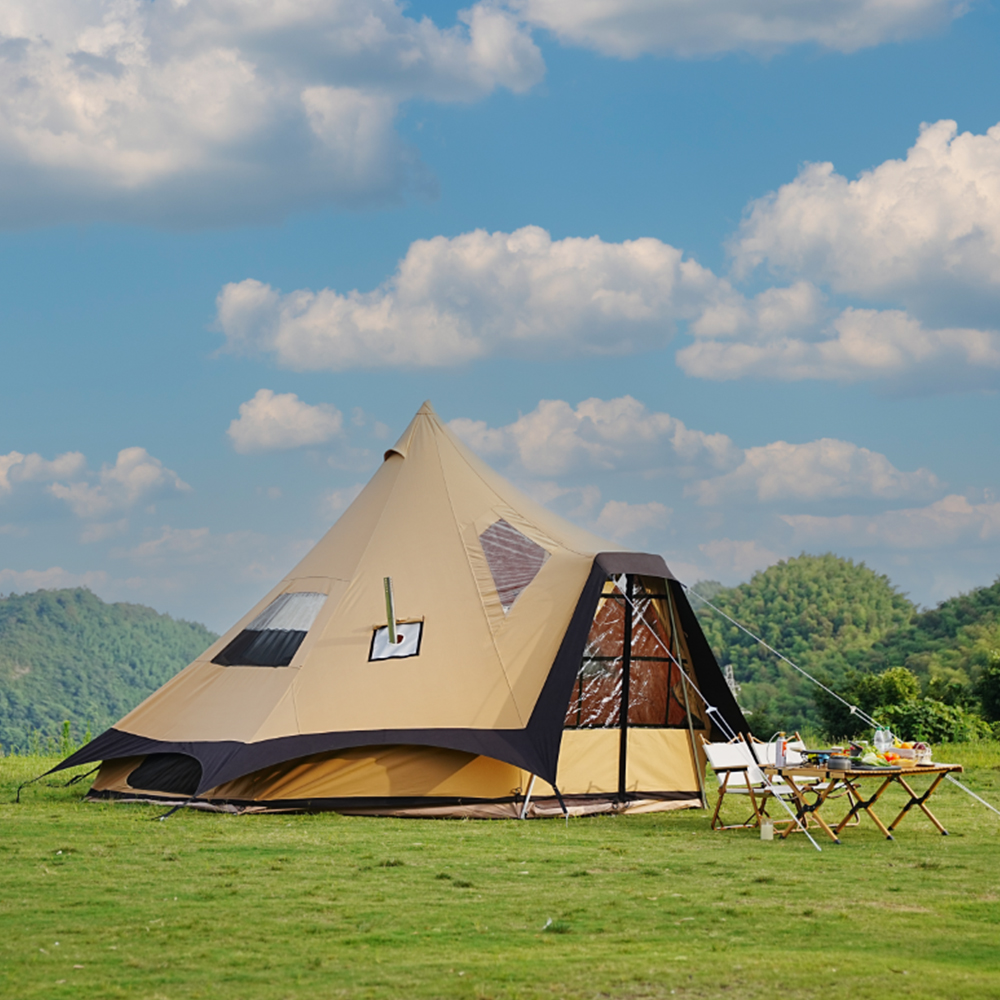 Luxury 4.5×4.5×3m glamping tent crafted with 100% premium cotton canvas and reinforced PVC ground sheet. This 15㎡ waterproof, mildew-resistant structure delivers exceptional durability for hospitality businesses seeking premium outdoor accommodations.