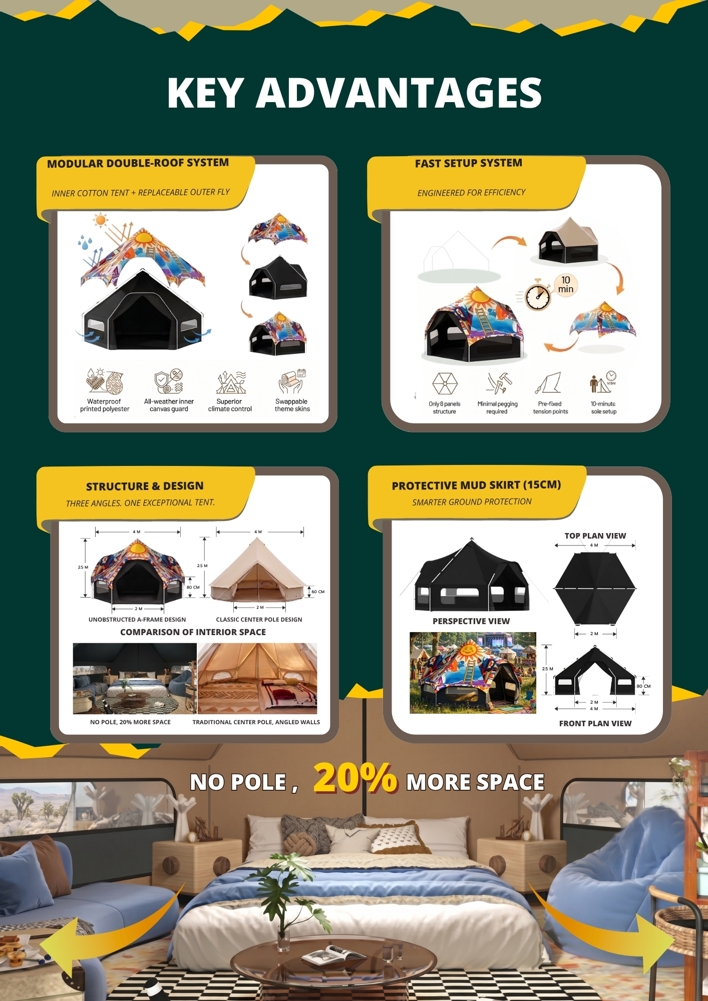 - Festival-Ready Fabric: 360g high-density poly-cotton canvas with superior waterproof and anti-mold coatings.